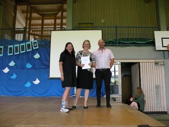 Eingestreut in dieses bunte Programm waren diverse Ansprachen, zunächst von Schulrätin Barbara Springwald, die eine kurze Rückschau auf den Werdegang der angehenden Pensionärin hielt und ihr anschließend die Urkunde zur Versetzung in den Ruhestand übergab. Nachdem auch Bürgermeister Gamisch und der Elternbeiratsvorsitzende Michael Kranner das berufliche Wirken von Frau Link gewürdigt hatten, folgte eine sehr lockere Darbietung von Rektor Lars Springwald. Er verglich die einjährige Zusammenarbeit mit seiner Konrektorin mit verschiedenen Filmen, die von Schiffen handeln. Grund dafür war die bekannte Tatsache, dass Frau Link mit ihrem Mann im Ruhestand einen Teil ihrer Zeit auf einem Hausboot verbringen wird. Nachdem er die Filme über Kriegsschiffe aussortiert hatte, entschied er sich am Ende für die Romantikkomödie „Love Boat“, einer Serie aus den 70er und 80er Jahren, da die Zusammenarbeit in der Schulleitung immer sehr harmonisch verlief.
