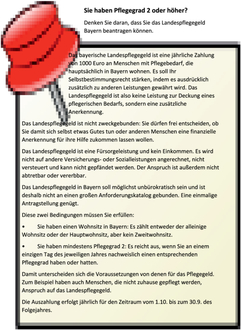 Denken Sie daran, dass Sie das Landespflegegeld Bayern beantragen können.