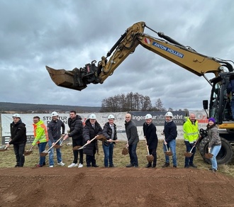 Die Baugenehmigung für das ehrgeizige Projekt wurde seitens der Gemeinde Frensdorf noch im Dezember erteilt, sodass die Investoren und Bauherren um die Familie Zauritz schon erste Aufträge auslösen konnten. Zuständig für den Neubau ist die Otto Mühlherr Baugesellschaft mbH, die ebenfalls durch zahlreiche Mitarbeitende mit vor Ort vertreten war und den ersten Baggerbiss sowie den Spatenstich vorbereitet hatte.