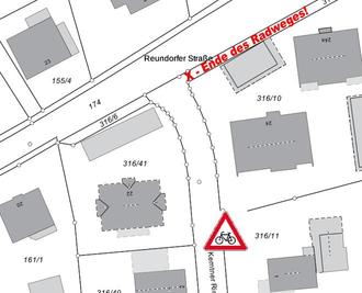 Der Radweg von Reundorf kommend endet in Frensdorf in der Reundorfer Straße unmittelbar vor der Einmündung in den Kerntner Ring. Dies ist entsprechend beschildert. Das Verkehrszeichen „Vorfahrt achten“ am Ende des Kerntner Rings bezieht sich auf den fließenden Verkehr in der Reundorfer Straße, nicht aber auf den Geh- und Radverkehr auf dem Geh- und Radweg. Dieser muss warten und die Vorfahrt gewähren, was ebenfalls eindeutig beschildert ist. Trotzdem fahren viele Radfahrer einfach weiter. Im vergangenen Jahr erfasste ein Pkw-Fahrer, der aus dem Kerntner Ring fuhr, einen Radfahrer, der das Ende des Radweges missachtet hat. Bei einer Verkehrsschau zusammen mit Vertretern des Landratsamtes und der Verkehrspolizei wurde wiederholt festgestellt, dass der Umfang der Beschilderung für die Vorfahrtsregelung bereits ausgeschöpft ist. Es liegt daher in der Eigenverantwortung der Radfahrer, das Ende des Radweges zu beachten und den Verkehrsteilnehmern, die aus dem Kerntner Ring fahren, die Vorfahrt zu gewähren. Dennoch bitten wir auch die Verkehrsteilnehmer, die vom Kerntner Ring in die Reundorfer Straße einfahren, um erhöhte Vorsicht vor den Radfahrern, die das Ende des Radweges nicht registriert haben. Hierzu wird im Kerntner Ring vor dem Einmündungsbereich zusätzlich das Gefahrenzeichen „Radfahrer“ angebracht, um auf diese Verkehrssituation aufmerksam zu machen (Beschluss des Bau- und Umweltausschusses vom 18.04.2023). Die bestehende Vorfahrtsregelung ändert sich dadurch allerdings ausdrücklich nicht.