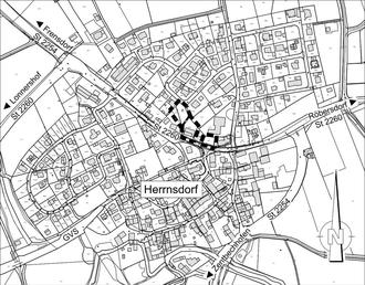 Der Planungsbereich des Bebauungsplanes umfasst insgesamt ca. 2.200 m². Betroffen sind die Flurstücke 539/1, 542/5 und 55/5, 55/19, alle Gemarkung Herrnsdorf, und wird von allen Seiten von bestehender Bebauung, angrenzend an die Herrnsdorfer Hauptstraße im Süden und die Hirtenleite im Norden begrenzt.