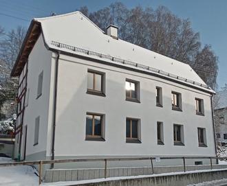 Am künftigen Haus zur Geschichte ist zwischenzeitlich der Außenputz fertiggestellt. Das Gebäude fügt sich nun elegant und nahtlos in das historische Ambiente mit Rössle-Gebäude, Frauenhaus und Schlossareal ein.