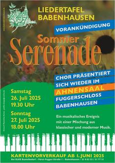 Reservieren Sie sich Eintrittskarten für den Abend am 26. oder 27. Juli 2025 für eine Sommerserenade im Schloss Babenhausen am besten gleich bei “ELKE Bastellbedarf” in Babenhausen.