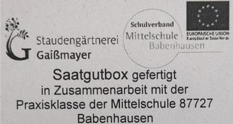 Die SchülerInnen der AG Holz, welche jeden Mittwoch in der Praxisklasse stattfindet, durften sich an einer Kooperation mit der Staudengärtnerei Gaißmayer beteiligen. Die Gärtnerei mit Sitz in Illertissen fragte an, ob sie die Praxisklasse bei der Herstellung von sogenannten Samenboxen unterstützen können. Daraufhin gingen die SchülerInnen ans Werk und bestückten insgesamt 100 Holzboxen mit den passenden Holzstegen, die zur Abtrennung des Saatguts gedacht sind.