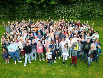 Nach drei aufgefüllten Tagen haben sich am Sonntag noch einmal Gäste und Gastgeber erschöpft, aber fröhlich zu einem Gruppenbild versammelt, bevor es für die Franzosen wieder auf die Rückreise in die Mayenne ging.