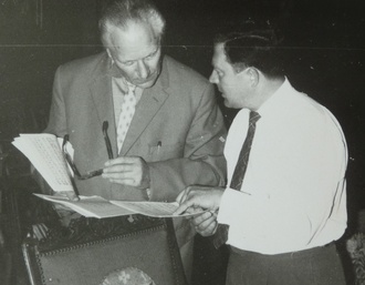 Fritz Fahrenschon und Prof. Otto Jochum ihm Ahnensaal bei einer Partiturbesprechung