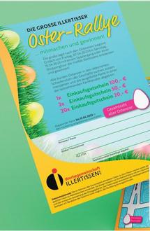 Die Illertisser Werbegemeinschaft veranstaltet vom 07.04.2023 bis 15.04.2023 eine große Osterrallye. Die Aufgabe besteht darin, in den teilnehmenden Geschäften die ausgestellten Ostereier zu zählen.