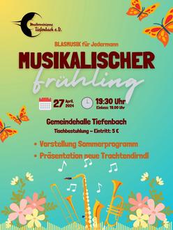 Wir freuen uns endlich wieder mal einen unterhaltsamen Abend mit leichter Blasmusik anbieten zu können. Das Konzert am 27. 04.2024 findet mit Tischbestuhlung und Pausenbewirtung statt. Stolz sind wir unsere Damen und Mädels mit neuen Dirndl’n, sowie neue Musikstücke unseres Sommerprogramms präsentieren zu dürfen.