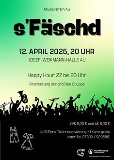 Der Musikverein Au lädt Euch ganz herzlich zum s'Fäschd in die Auer Josef-Weikmann-Halle ein.