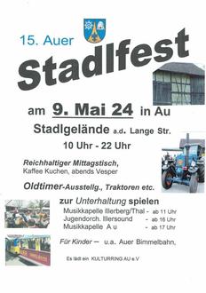 Der Kulturring Au lädt zu seinem altbekannten Stadlfest recht herzlich ein und freut sich auf ihren zahlreichen Besuch. Beginn ist um 10.00 Uhr mit einem Weißwurstfrühschoppen.