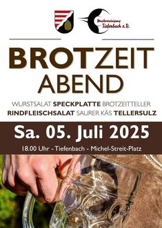 Herzliche Einladung zum Brotzeitabend der Musikvereinigung Tiefenbach am 5. Juli 2025! Ab 18:00 Uhr verwöhnen wir euch auf dem Michel-Streit-Platz mit Klassikern wie Wurstsalat, Speckplatte, Tellerschmankerl und vielem mehr.