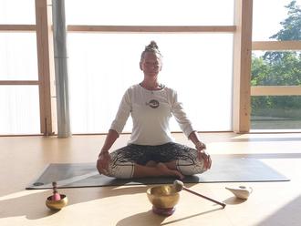Yoga-Lehrerin Annette Schulz: „Ich zeige dir viele Asanas-Übungen, Pranayama-Atemübungen und kleine Mediationen mit Klangschalen. Ich freue mich auf dich.