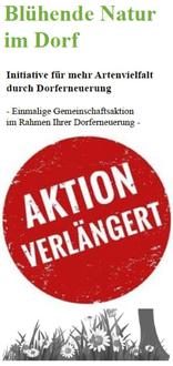 Ziel der Aktion „Blühende Natur im Dorf“ ist es, interessierten Bürgerinnen und Bürgern die Möglichkeit zu bieten, aktiv einen positiven Beitrag zur Förderung der Artenvielfalt, zum Schutz des Lokalklimas und zur Aufwertung des Ortsbildes durch Pflanzungen in Ihren Hausgärten zu leisten.