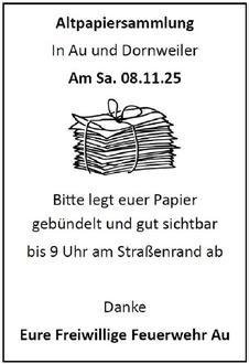 08.11. Papiersammlung in Au und Dornweiler, 8.45 Uhr Treffpunkt