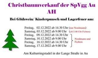 Auch dieses Jahr veranstaltet die AH der SpVgg Au wieder ihren traditionellen Christbaumverkauf im Kulturingstadl Au.