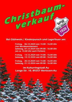 Auch dieses Jahr veranstaltet die AH der SpVgg Au wieder ihren traditionellen Christbaumverkauf im Kulturingstadl Au.