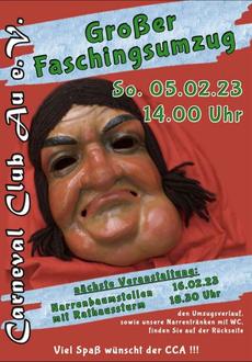 Am 05.02.2023 findet um 14 Uhr wieder unser Faschingsumzug in Au statt.