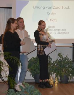 Zora Bock mit ihren Trainerinnen Melanie Schmitt und Hannah Zinser
