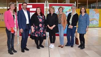 Von links: Frau Margot Köhler-Tanzberger (Rektorin der Grundschule Schwanfeld), Herr Carsten Bräumer (Vorstand der Diakonie Schweinfurt e.V., Bianca Vohmann (Offenen Behindertenarbeit der Diakonie Schweinfurt), Frau Anette Altenhöfer (Lehrerin), Frau Bet