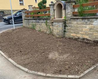 | - | Die Grünanlage wurde mit Mutterboden aufgefüllt und das Podest für die Sitzgruppe ist fertig gestellt. Der Weg wurde vorbereitet, Ausführung in WPC, es erfolgen keine Pflasterarbeiten. |
