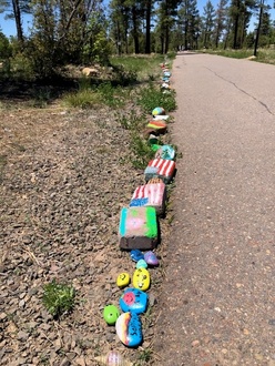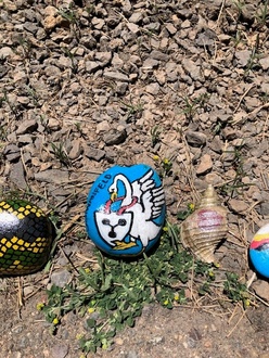 In unserer Gegend gibt es einen See, um den sich seit über einem Jahr eine immer länger werdende „Steinschlange“ streckt. Spaziergänger reihen bemalte Steine am Wegesrand an, und seit heute ist auch das Schwanfelder Wappen dabei, gemalt von unserem jüngsten Sohn, zur Erinnerung an meine alte Heimat.