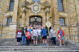In Vierzehnheiligen, wurde der Gottesdienst durch Herrn Pfr. Fries i. R. gehalten. Anlass war das 40jährige Wallfahrtsjubiläum seiner Pfarrgemeinde Krum. Herr Pfarrer Fries lud erfreulicherweise alle Gottesdienstbesucher nach Schwanfeld ein. Er selbst war bereits öfters in Schwanfeld und verwies auf den Besuch des Bandkeramikmuseums, den Jüdischen Friedhof und auf die Kirche in Heiligenthal.