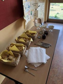 Im Englischunterricht befassten sich die wissbegierigen Lerner mit dem englischsprachigen Rezept. Zuerst wurden die bildlichen Arbeitsschritte in die richtige Reihenfolge gelegt, anschließend wurde das Rezept besprochen. Dabei wurden neue Wörter wie „tablespoon“ oder „baking powder“ gelernt.