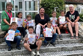 Am 21. Juli 2023 war durfte ich wieder die Preisverleihung an die Quizsieger der Antolin-Leseförderung der Grundschule des Schulverbandes Schwanfeld vornehmen. Claudia Kober von der Bücherei hatte ein leckeres Frühstück für die eifrigsten Bücherwürmer in unserer Grundschule gerichtet, und so haben wir schön zusammengesessen und uns von unseren Lieblingsbüchern erzählt.