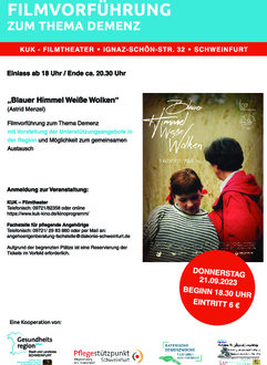 Filmvorführung zum Thema Demenz mit Vorstellung der Unterstützungsangebote in der Region Schweinfurt und Möglichkeit zum Austausch – Anmeldung ab sofort möglich