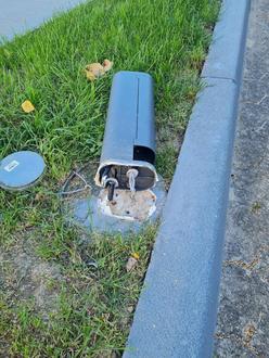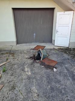 Hier wurde der Steckdosenturm an der neu angelegten Grünfläche mutwillig beschädigt. Im ehemaligen Anwesen Fehn wurde im Hof eine Grube geöffnet und versucht einen Blumenkasten hinein zuwerfen.