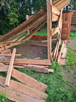 Das Hüttendorf sollte bis zum Schulbeginn den Kindern als Spielfläche erhalten bleiben. Leider wurden an dem vor genannten Wochenende drei der sieben Hütten ebenfalls mutwillig zerstört. Aus Sicherheitsgründen musste das Hüttendorf vorzeitig abgebaut werden.