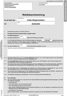 Bürgermeisterwahl am 28.09.2025 - Bekanntmachung