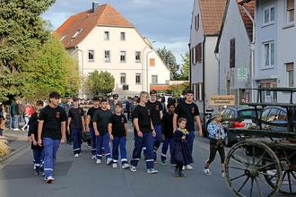 Samstags um 17.30 Uhr versammelten sich in der Kembachstraße die Ehrengäste von der Kreisbrandinspektion und dem Gemeinderat, die Fahnenabordnungen sämtlicher Schwanfelder Vereine, zahlreiche Feuerwehren aus den umliegenden Ortschaften sowie drei Musikkapellen, um in einem feierlichen Festumzug durch den Ort bis hin zum Festzelt am Raiffeisenplatz zu laufen. Auch zwei historische Pumpen sowie der Hanomagoldtimer der Feuerwehr Dipbach fuhren mit. Die Gruppen wurden dabei von zahlreichen Schwanfelder Kindern begleitet, die mit Schildern und Blumensträußen den Umzug schmückten. Am Straßenrand verfolgten sehr viele ZuschauerInnen den Umzug und grüßten die Mitlaufenden mit Blumen und geschmückten Häusern. Hierfür möchten wir uns recht herzlich bedanken!