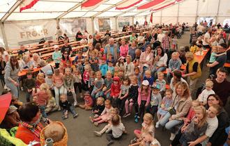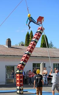 Im Anschluss ließen sich die Gäste bei traditioneller Musik der Opferbaumer Musikanten leckeren Spanferkelbraten schmecken. Der Nachmittag stand ganz im Zeichen der Familien, denn hier wurde so einiges für Kinder und Jugendliche geboten, während Eltern und Großeltern es sich im Zelt gutgehen ließen: Fahrzeugschau, Bierkistenstapeln, Hüpfburg, Spielmobil und vieles mehr verwandelten das Firmengelände der Firma Neuhoff in ein wahres Spieleparadies.