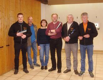 im Bild v.l.: Bauer Gerald (Schütze), Winzig Friedrich (Sportleiter), Koßner Edith (2. Schützenmeister), Stiller Dieter (Schütze), Bauer Viktor (Schütze), Ziegler Gerhard (Schütze und Mannschaftsführer) Foto: Friedbert Koßner
