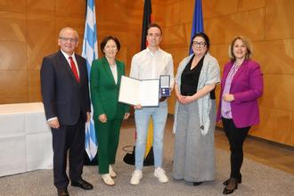 Bild von links nach rechts: Regierungspräsident Dr. Eugen Ehmann, stellvertretende Landrätin Christine Bender, Sebastian Pfister, 1. Bürgermeisterin Lisa Krein, Abgeordnete im Bayrischen Landtag Martina Gießübel