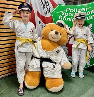 Besonders ausgezeichnet wurden die Judokämpfer, die im Jahr 2023 den Titel "schwäbische Meister" erreicht haben. Die von Jugendleiter und Polizeioberkommissar Marc Schwalber eingerichtete Foto-Ecke mit dem Königsbrunner Judobären und einigen Polizeimützen erfreute sich großer Beliebtheit. Dort wurden viele Bilder im Judoanzug und mit der Polizeimütze geschossen. An den strahlenden Kinderaugen konnte man erkennen, dass bei manchem Kind der Wunsch "ich möchte einmal Polizistin oder Polizist werden" geweckt wurde. "Im Polizeisportverein Königsbrunn haben Kinder und ihre Eltern bereits frühzeitig einen positiven Kontakt zur Polizei, gewinnen Vertrauen und sehen die Polizei als Freund, Helfer und Begleiter", wie ein Vater dem Judovorstand und Polizeihauptkommissar Johannes Daxbacher anvertraute.