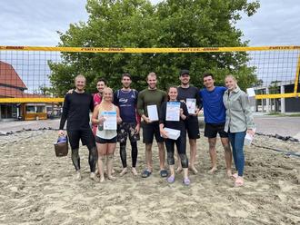 Die strahlenden 1. und 2. Siegerinnen und Sieger der diesjährigen Beachvolleyball-Stadtmeisterschaft.