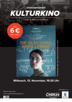 Das Königsbrunner KULTURKINO findet immer am 2. Mittwoch im Monat im Cineplex, Bürgermeister-Wohlfarth-Straße 81, um 19:30 Uhr zum vergünstigten Preis von nur sechs Euro inkl. Loge statt (Onlinepreis, Kinokasse sieben Euro, ggf. zzgl. Aufpreis für Premiumsitze). Alle, die den Termin verpasst haben, haben die Möglichkeit, den Film auch noch im Nachgang an weiteren Terminen zu sehen – dann jedoch zum regulären Eintrittspreis.