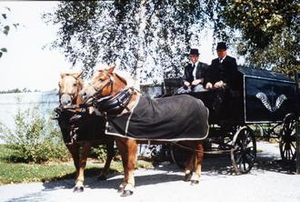 Der evangelische Pferde-Leichenwagen war bis 1968 im Einsatz. Er wurde vom Auto als Bestattungswagen abgelöst.
