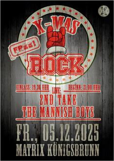 Ab 19:30 Uhr öffnen sich die Türen, bevor es um 21:00 Uhr richtig losgeht: Den Abend eröffnet die energiegeladene Vorband „The Mannish Boys“, die mit sattem Sound und Rock´n´Roll vom Feinsten das Publikum anheizen. Danach übernimmt „Second Take“, die Gymnasium-Band, als Main-Act die Bühne – mitreißend, leidenschaftlich und perfekt für alle, die den Niklaus lieber mit Gitarrenriffs als mit Glöckchen feiern.