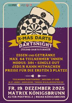 Am 19. und 20. Dezember 2025 geht es in der Jugendfreizeitstätte MatriX richtig zur Sache, denn dann werden die ersten Pfeile bei den mit Spannung erwarteten Dartsturnieren geworfen – richtige Steeldarts! Junge Dartsbegeisterte zwischen 8 und 27 Jahren sind eingeladen, ihr Können unter Beweis zu stellen und spannende Preise zu gewinnen.
