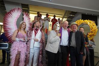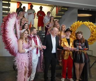 Auch in diesem Jahr hatte der CCK Fantasia zum Faschings-Start wieder außergewöhnliche Geschenke für die Stadtspitze im Gepäck. Passend zum Showmotto überreichten die Vereinsmitglieder 1. Bürgermeister Franz Feigl ein lilafarbenes Sakko mit italienischem Pizza-Flair, 2. Bürgermeister Maximilian Wellner erhielt einen Strohhut im modischen Tricolore-Look und 3. Bürgermeisterin Ursula Jung durfte sich über eine elegante venezianische Maske freuen.
