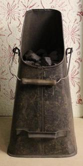 Die Kohle wurde mit der Kohlenschütte aufgenommen und in den Ofen gekippt. Die Schütte ist mit einem weiteren Ofen und Zubehör in der Wohnstube des Lechfeldmuseums ausgestellt.