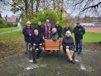 Eine der beiden aus Holz und Metall gefertigten Bänke weist dabei eine Besonderheit auf – es handelt sich um eine sogenannte „Ratschbank“: Ein Sitzplatz ist den anderen entgegengesetzt ausgerichtet, damit man unangestrengt und bequem mit dem Gegenüber ratschen kann. Die hochwertig produzierten Sitzbänke wurden in Handarbeit von der Werkstatt für behinderte Menschen in Ursberg hergestellt. „Mir war es wichtig, dass die Bänke dort gefertigt werden“, meint Schmidt-Aßmann. Zusammen mit dem Projektteam, bestehend aus Helfern des Vereins für Gartenbau und Landespflege Königsbrunn, der Seniorenfraktion der Kreisunion, mit fachmännischer Hilfe des städtischen Betriebshofs und mit dem Segen von Pfarrer Bernd Leumann konnten die Bänke im Rahmen der gemeinsamen Aktion an ihrem neuen Platz montiert werden.