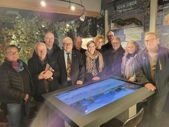 Sie versammelten sich bei einer ersten Präsentation der neuen Ausstellungsbereiche um den „Informationstisch“ (v. l.): Birgitt Kopp (2. Vereinsvorsitzende), Dr. Eberhard Pfeuffer, 1. Bürgermeister Franz Feigl, Günther Groß (1. Vereinsvorsitzender), 2. Bürgermeister Maximilian Wellner, Rebecca Ribarek (Leitung Kulturbüro), Claudia Deeney (Stadtrat), Erich Herreiner (LEADER-Koordinator für Nordschwaben und Altmühlfranken), Alwin Jung, Marion Kehlenbach und Helmut Schuler (Stadträte).