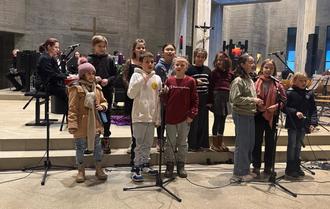 Ein besonderes Highlight waren die Kinder des Schulchors der Ganztagesklasse der Grundschule Süd, die erstmals beim Adventskonzert der Musikschule auftraten. Unter der Leitung von Helena Silberstein stimmten sie fröhlich mit „Kling, Glöckchen, Kling“ und „Feliz Navidad“ auf die bevorstehende Vorweihnachtszeit ein. Selbst wenn nicht jeder Ton perfekt saß, so kam doch die große Freude, die die Kinder beim Singen ausstrahlten, beim Publikum bestens an.