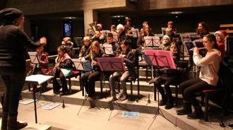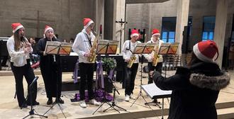Früh übt sich: Mit „Morgen kommt der Weihnachtsmann" und „Jingle Bells" begrüßten die Bläserklasse und das Vororchester Bläser den Advent.