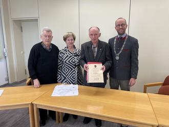 Assistiert wurde er dabei von der Stellv. Kreisobfrau der SL Augsburger Land, Christa Eichler. Das Gemeindeoberhaupt dankte Herbert Kinzel für das Ehrenamt und bezeichnete ihn als Leuchtturm und Vorbild.
