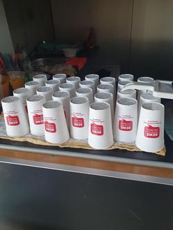 Werbetechnisch wurde der Auftritt von REWE Königsbrunn auch durch neu angefertigte entsprechend etikettierte Mehrwegkaffeebecher erweitert, die an die Teilnehmer ausgegeben wurden, so dass die Abteilung ihrem Anspruch der ökologischen Nachhaltigkeit in besonderem Maß nachkam.